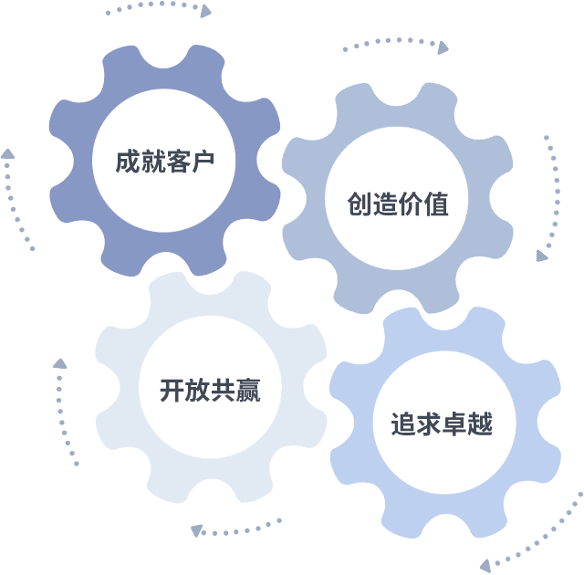 成就客户是一切决策的出发点,创造价值是衡量所有工作的标准,追求卓越是云顶集团做事做人的态度,开放共赢是云顶集团的格局也是最终的结果。价值观的齿轮环环相扣,推动着组织里的每个人不断向前。